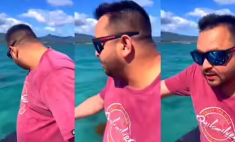पटनाः राजद सुप्रीमो लालू प्रसाद यादव के बेटे और बिहार के पूर्व उपमुख्यमंत्री तेजस्वी यादव नए साल की छुट्टियां मनाने विदेश गए हैं। इसी दौरान उनका एक वीडियो सोशल मीडिया पर तेजी से वायरल हो रहा है। वीडियो में तेजस्वी यादव नीले रंग की हाफ पैंट, हल्के लाल रंग की टी-शर्ट और काले सनग्लास पहने नदी में बोटिंग करते नजर आ रहे हैं।