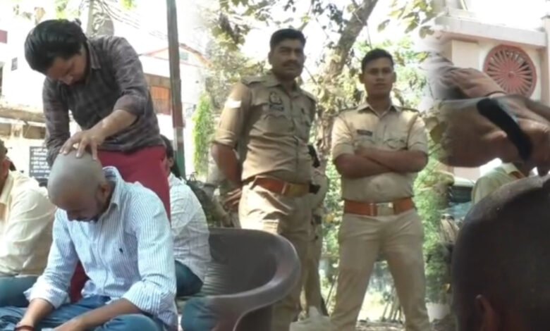 उदय प्रताप कॉलेज में छात्रों का मुंडन प्रदर्शन, हत्याकांड पर फूटा गुस्सा