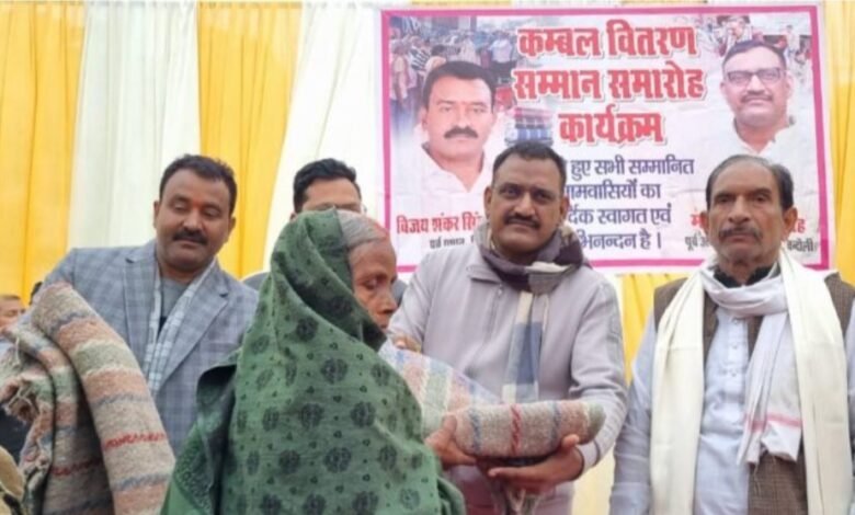 चंदौली। इलिया क्षेत्र के खिलची गांव में ठंड से राहत दिलाने के लिए समाजसेवी विजय शंकर सिंह उर्फ बाबिल सिंह ने 210 असहाय और जरूरतमंद लोगों में कंबल वितरित किए। कड़ाके की ठंड में कंबल पाकर लोगों ने राहत महसूस की।