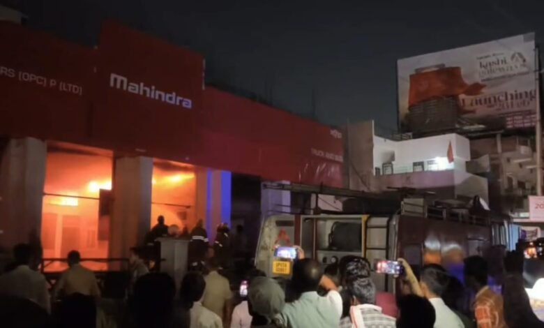 मुगलसराय के महिंद्रा शोरूम में लगी भीषण आग, मची अफरा-तफरी