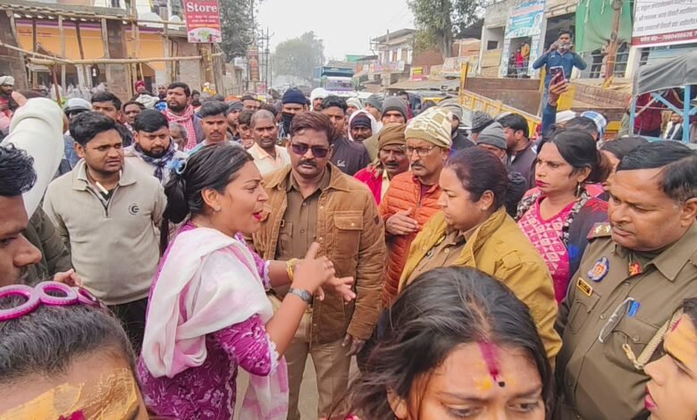 चहनियां चौराहे पर किन्नरों का चक्का जाम, एक घंटे तक अफरा-तफरी